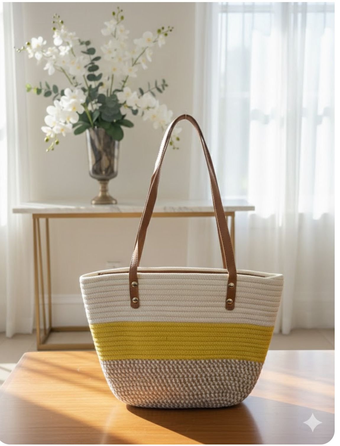 Beige Large Vacation Straw Bag with Plain Studded Detail for Style