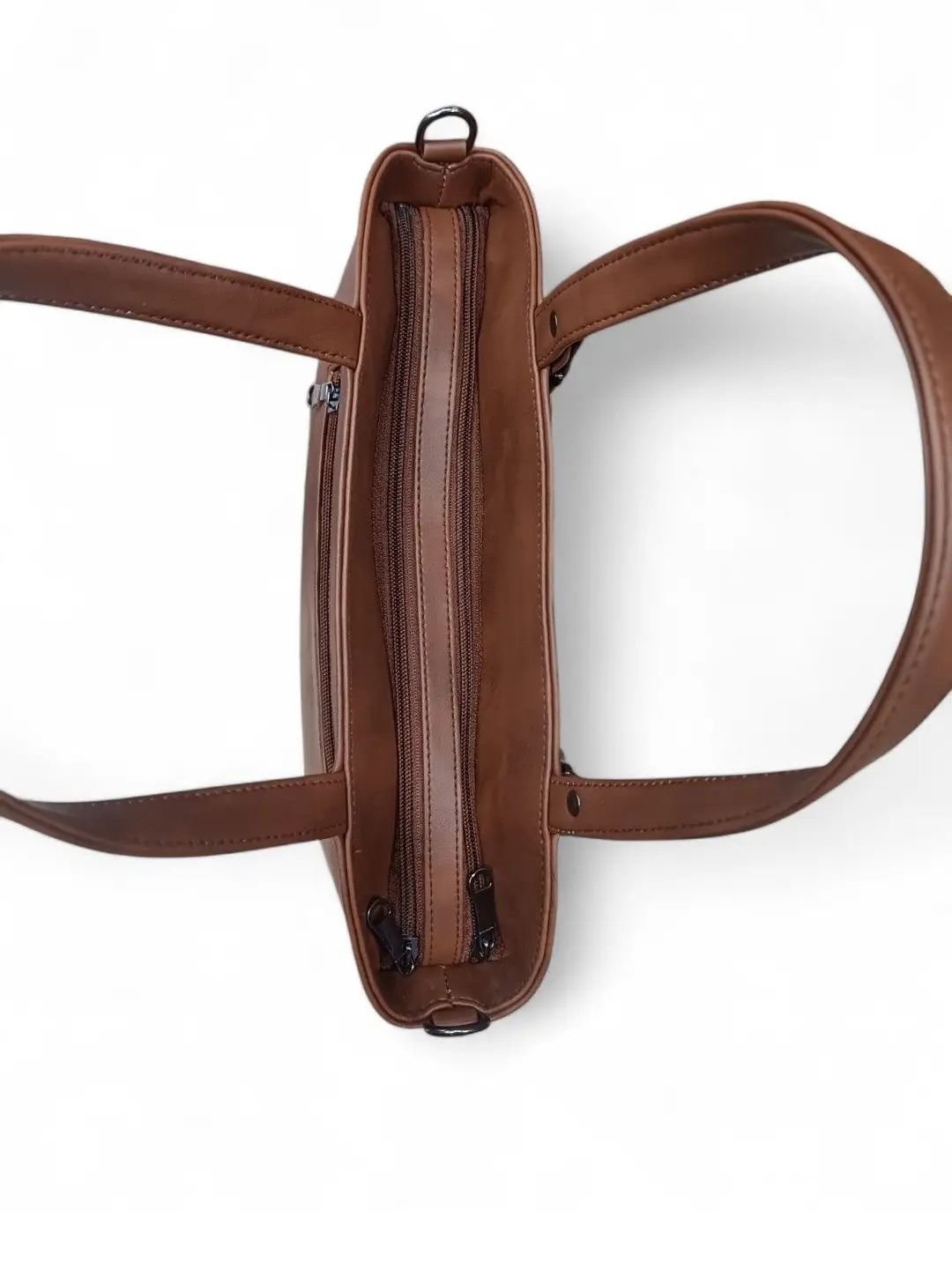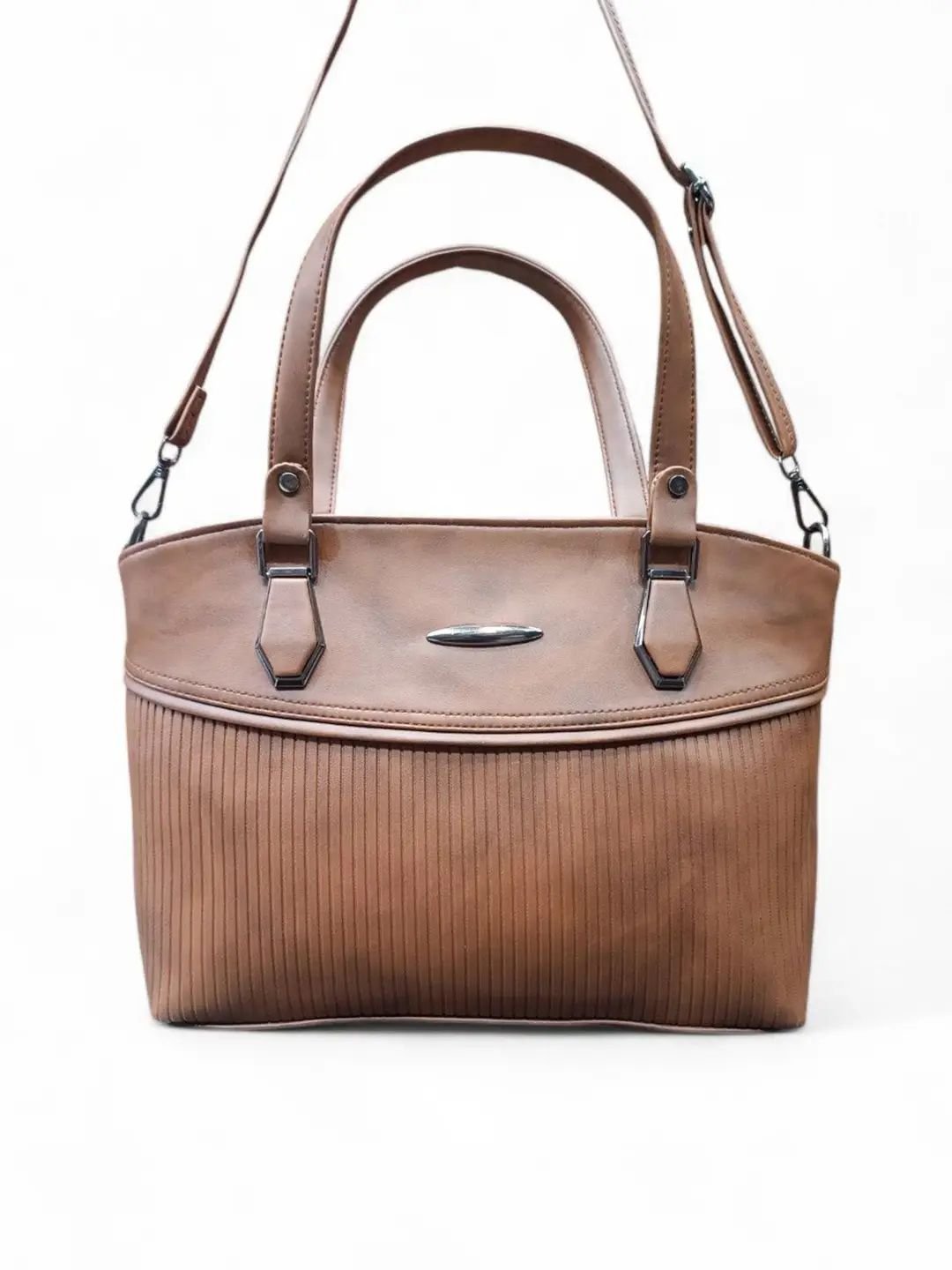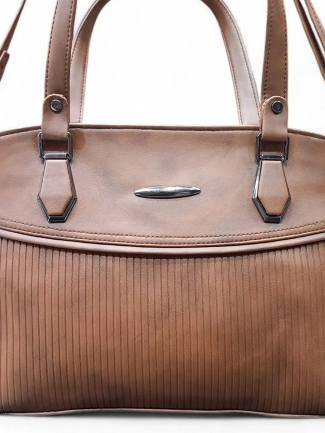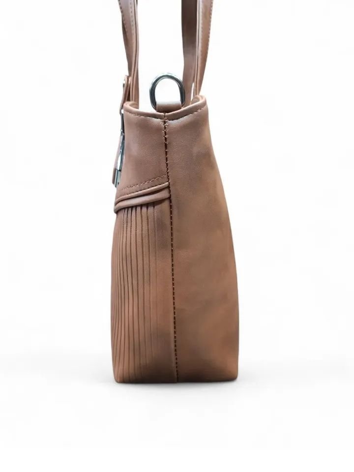 Brown solid textured handheld bag, with cut work detail
