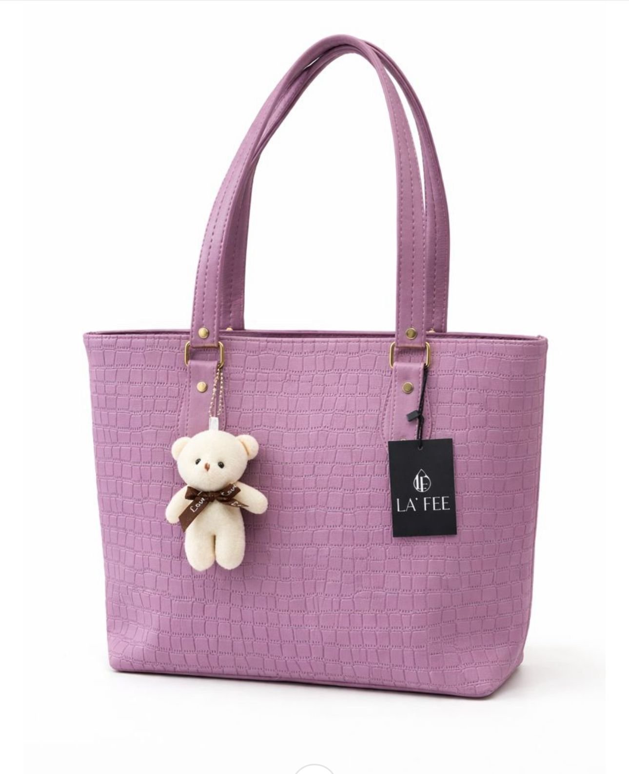 Includes a soft plush bear keychain charm that adds a fun sweet and playful touch to the sophisticated design